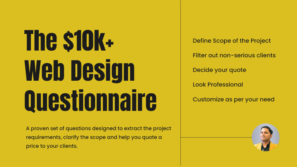 This is a web design questionnaire that I have used personally for my web design projects to generate over $10k+ till now and counting. The number is not random. I am not some theoretical GURU but a practitioner of my craft. I walk my talk.